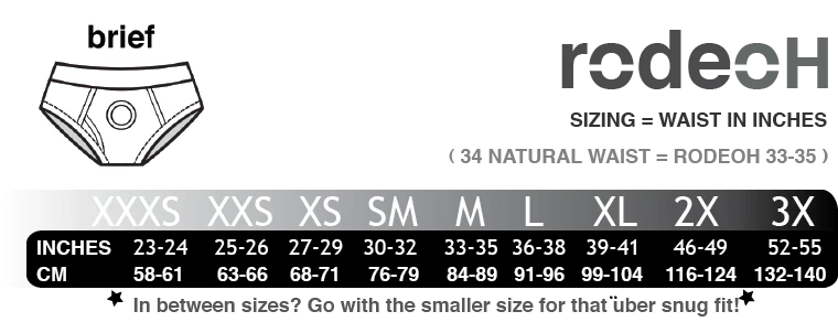 Here by popular demand, the RodeoH brief is an iconic underwear-style harness that is beloved by many. Not only do they make strapping on a snap (wear them as underwear til you're ready to play -- no fooling around with changing clothes or adjusting buckles), they're damn stylish. RodeoH's soft, comfortable briefs are made of 95% cotton and 5% elastene, with a 1.5" waistband. O-ring is 1.5" in diameter, with a small amount of stretch. RodeoH briefs are best paired with toys that are between 5"-6" length x 1.5"-1.875" width. Machine wash cold, tumble dry low.